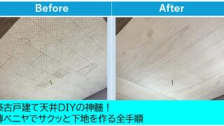 築50年の空き家再生!汚れの目立つジプトーン天井を、格安の2.5mmベニヤでクロス下地へとリフォームする手順を解説。コストを抑えつつ美しく仕上げるコツ、プロ愛用の工具、作業を楽にする工夫まで、35万円物件のDIY術を余すところなく公開します。