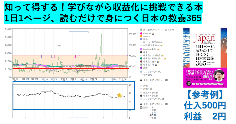 → 仕入れ価格・販売価格・Keepa波形つきでデータを公開。参考にできます。 - 「勉強になる本」を狙う戦略が学べる