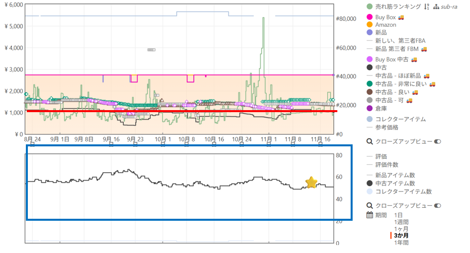 👉 グラフが下がる(良い)=売れたタイミング。つまり売れ筋を示しています。