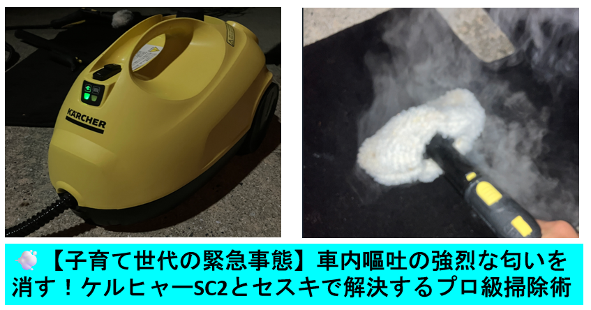 しかも、使ったのはたった2つのアイテム。特に最後の”ケルヒャーSC2″を使ったことで、匂いの根本原因まで一瞬で解決。車を持つ子育て世代の皆さんが直面しうる緊急事態の解決法と、費用対効果の高い最強アイテム術をご紹介します。ペットを飼ってる方も参考になると思います。