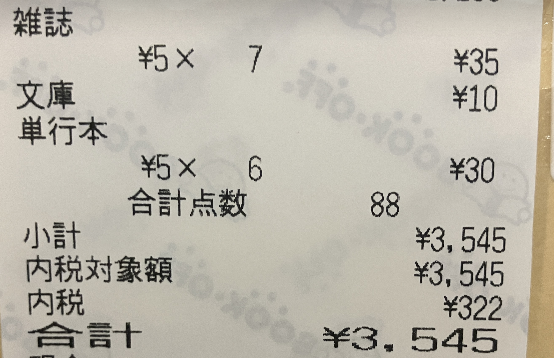 確かに88冊で3,545円にはなりました。しかし、これだけの本を運ぶのにかかった「労力」と「ガソリン代」を考えると、割に合いません。