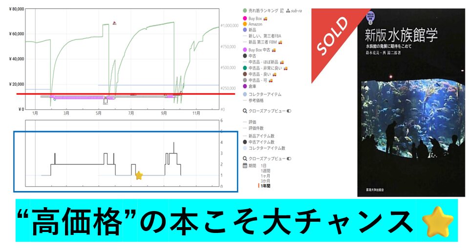 - 今回解説したようにKeepaが読めれば物販全般に知識が応用できます。特に中古本せどりは”安く仕入れて相場で売る”というビジネスの基本がとても少額で学べます。また中古本せどりは一度ノウハウを身に着ければ”ライバルが多すぎて商品枯渇する”事が少なく初心者にはおススメです☆彡