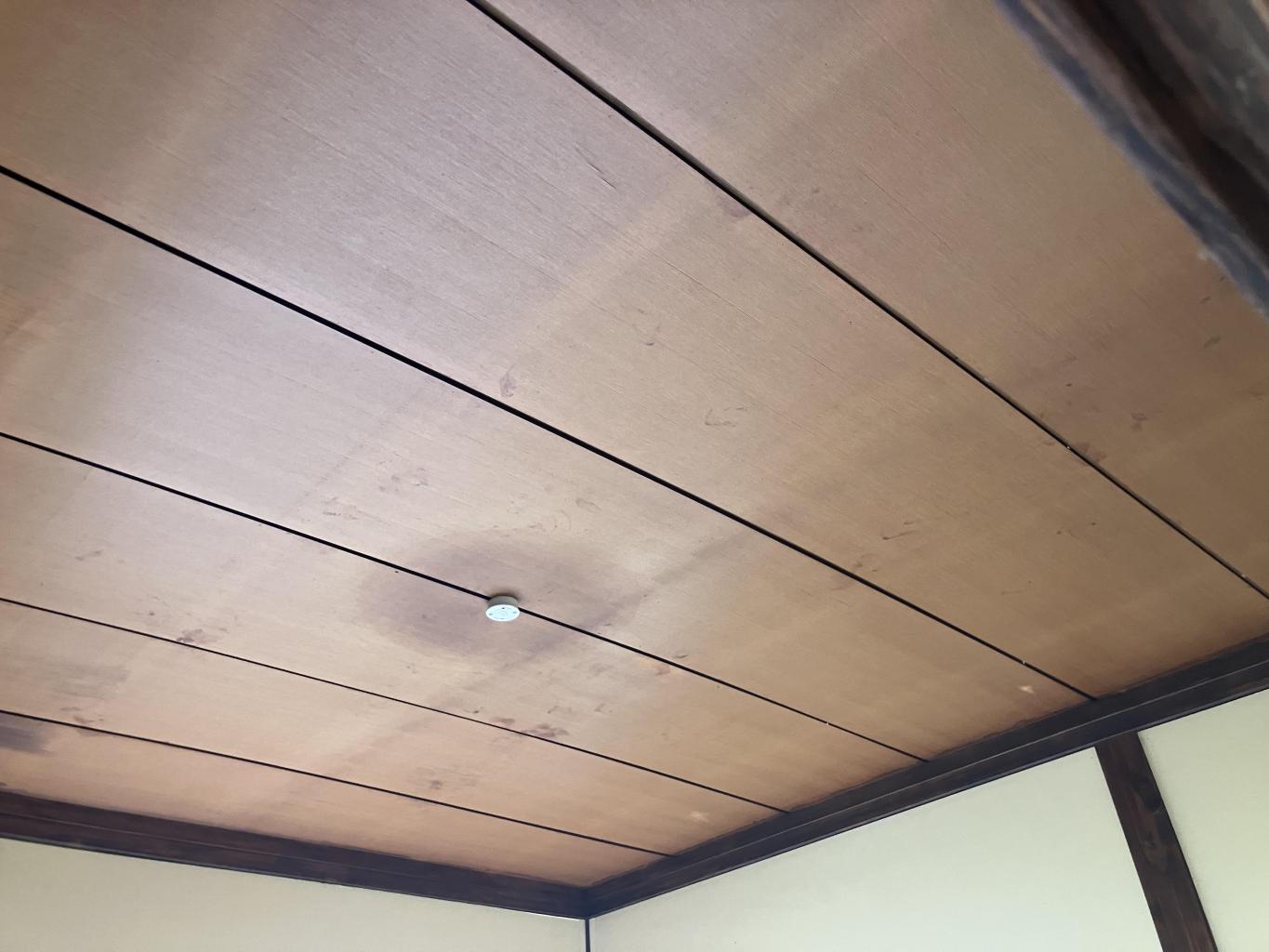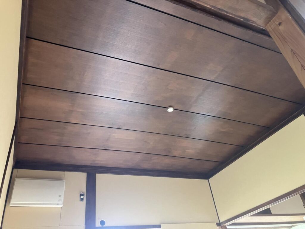 - 築古物件の天井汚れはオイルステインで安く手早くカバー可能。