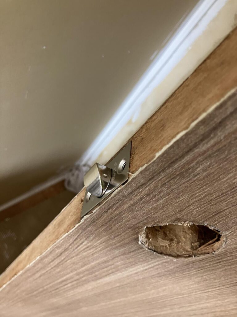 After applying the wallpaper, I installed the doorknob, but I misunderstood the manual and drilled for a 60mm backset instead of the correct 50mm (T ^ T).