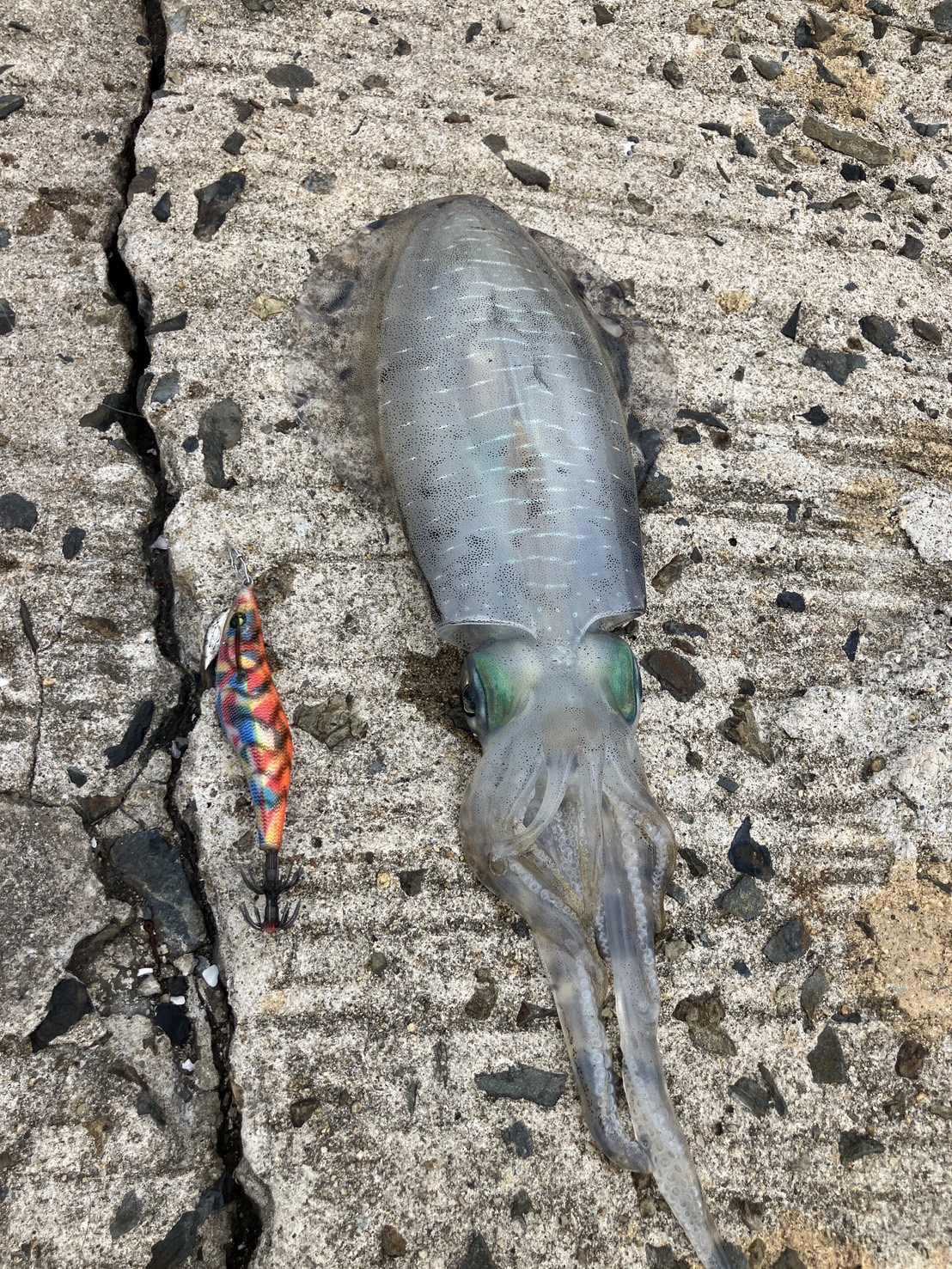 ドラグを鳴らしながら慎重に寄せて、無事キャッチしたのは秋にしてはかなりの良型アオリイカ。思わず声が出る嬉しい釣果となりました。