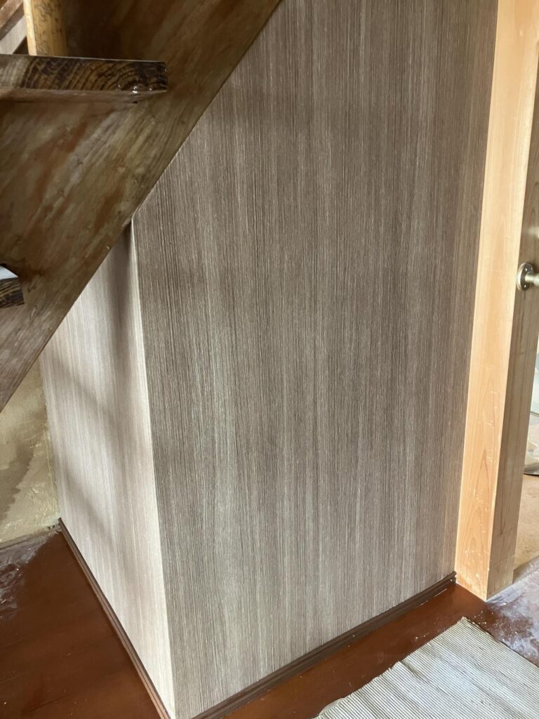 - 現在:石膏ボード上貼りとクロスで仕上げ済み