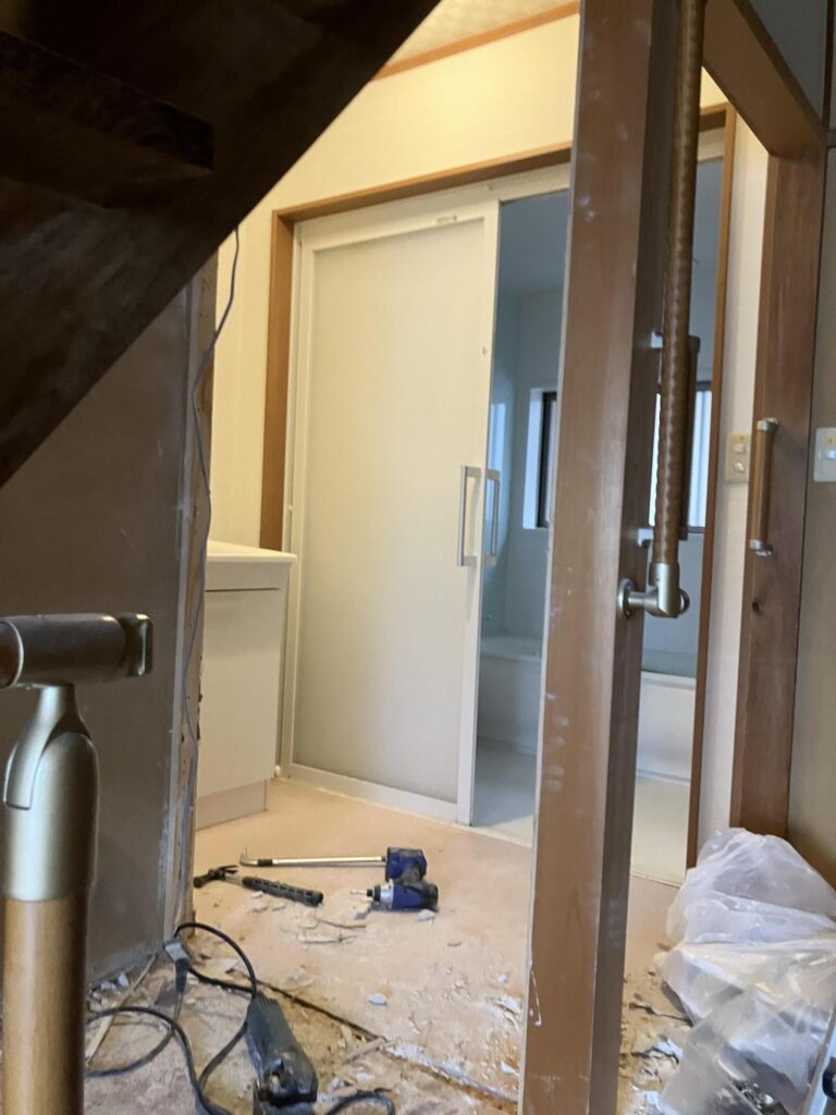 - 洗面所の壁を壊し、階段下に部屋を造作