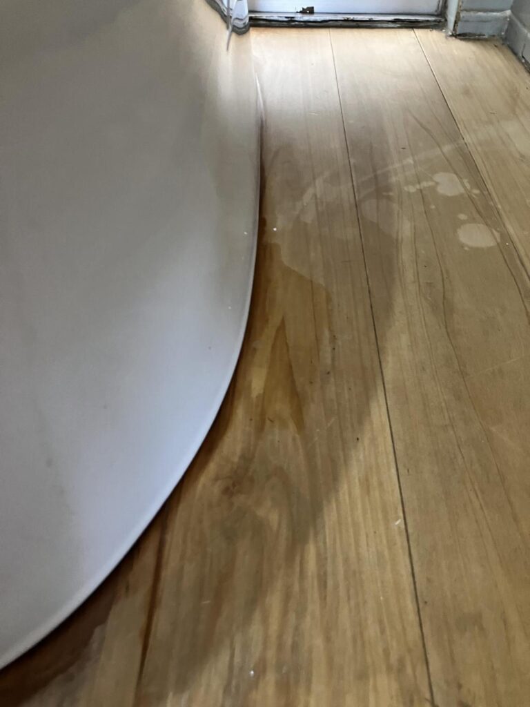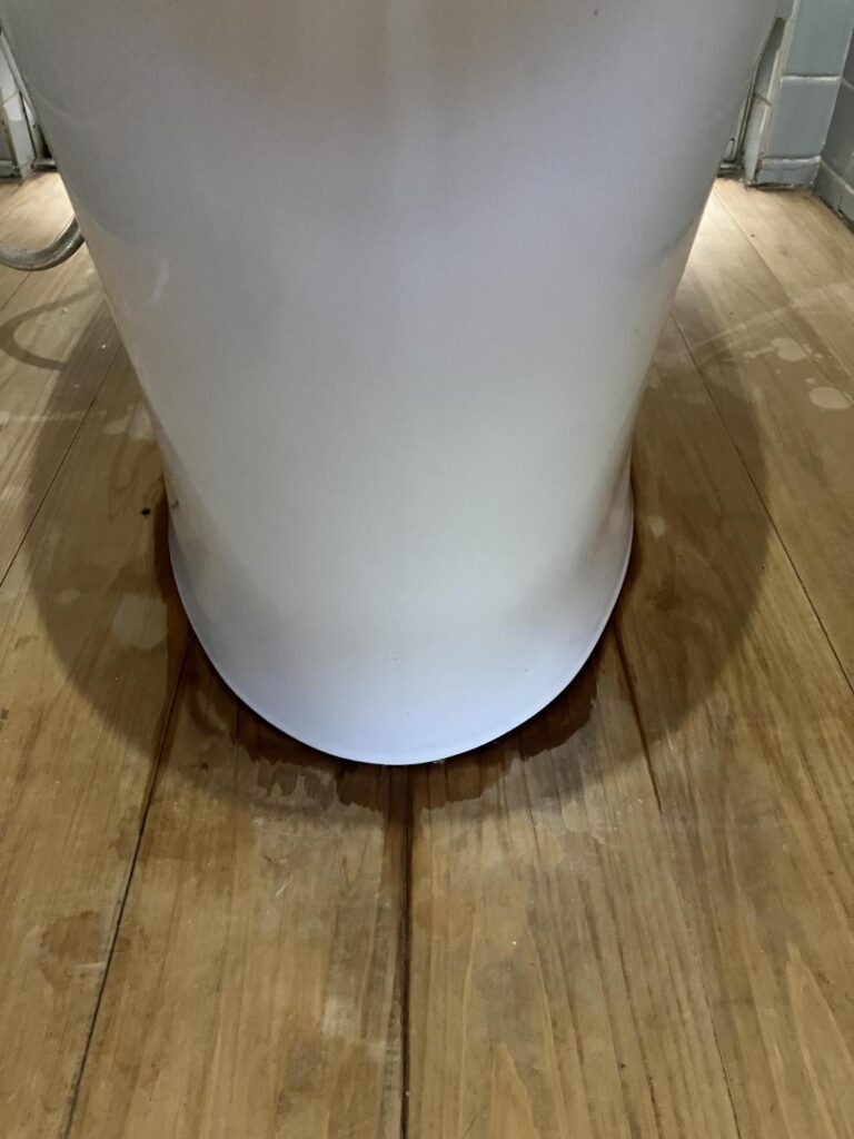 トイレ清掃→クッションフロア施工の工程で、便器周りの床が拭いても拭いても“じわ〜っと水が出てくる”のを発見‼️