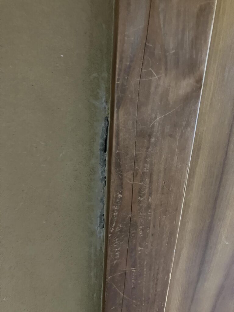 Previously, I shared about the hole in the sand wall next to the toilet, caused by the door handle.