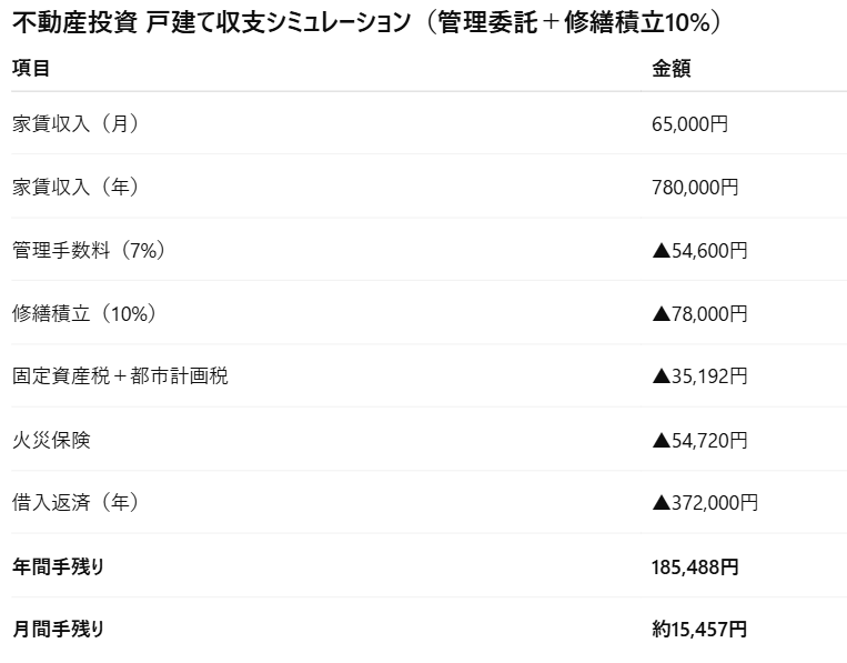 - 修繕・退去入替想定:家賃の約10%を目安(ただし実際は変動するため運用で調整)