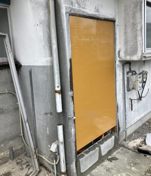 今回のプロジェクトは、古いアルミ製勝手口ドアの解体から始まりました。