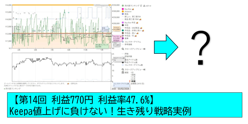 - 解決策:Keepaの有料データを活用し、1冊で数千円の利益を生む「高単価・専門書」を在庫の一部に組み込む。