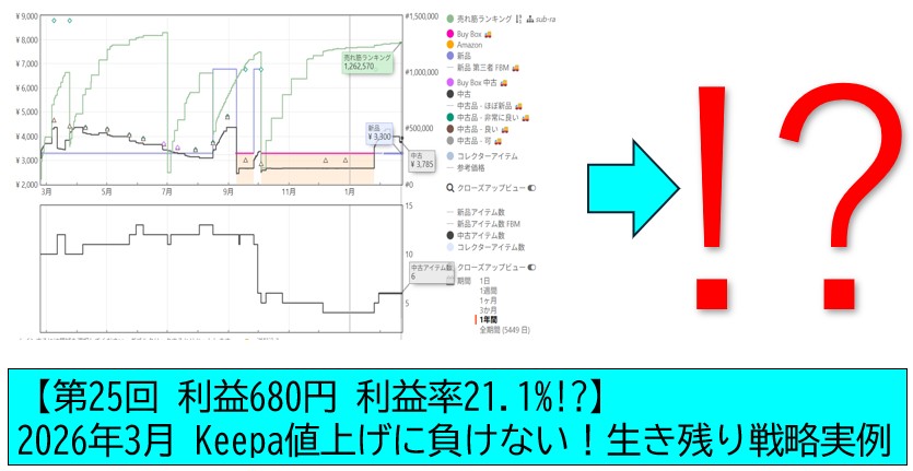 - 解決策:Keepaの有料データを活用し、1冊で数千円の利益を生む「高単価・専門書」を在庫の一部に組み込む。