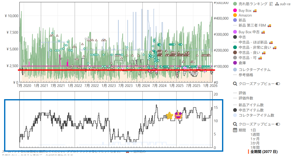 Keepaの波形は「全期間」で見ることで、季節性も把握できます。