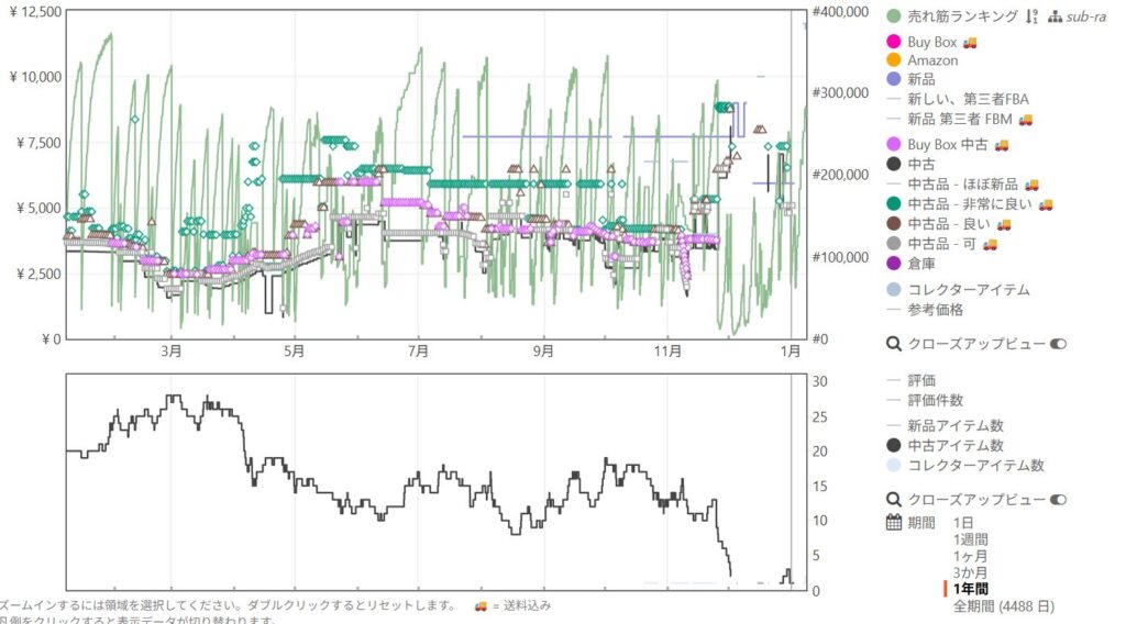 keepaの波形は全期間でみており、季節性(例 受験、引っ越しシーズン等との相関)も把握できます。👇