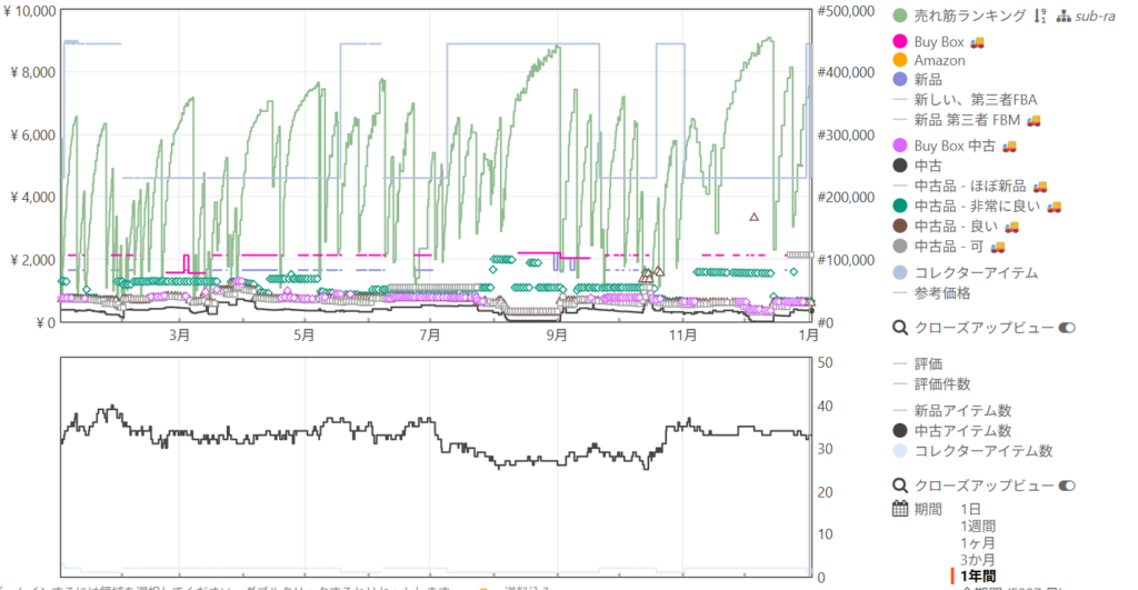 同じ商品の直近1年間のKeepaの波形です👇