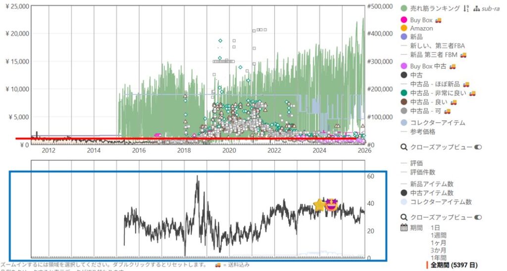 keepaの波形は全期間でみており、季節性(例 受験、引っ越しシーズン等との相関)も把握できます。👇