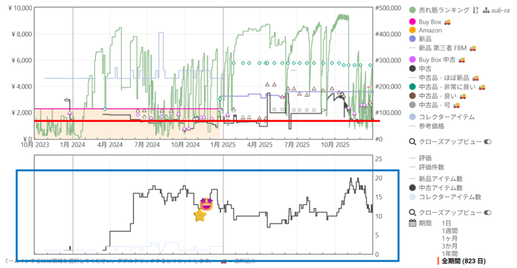 keepaの波形は全期間でみており、季節性(例 受験、引っ越しシーズン等との相関)も把握できます。👇