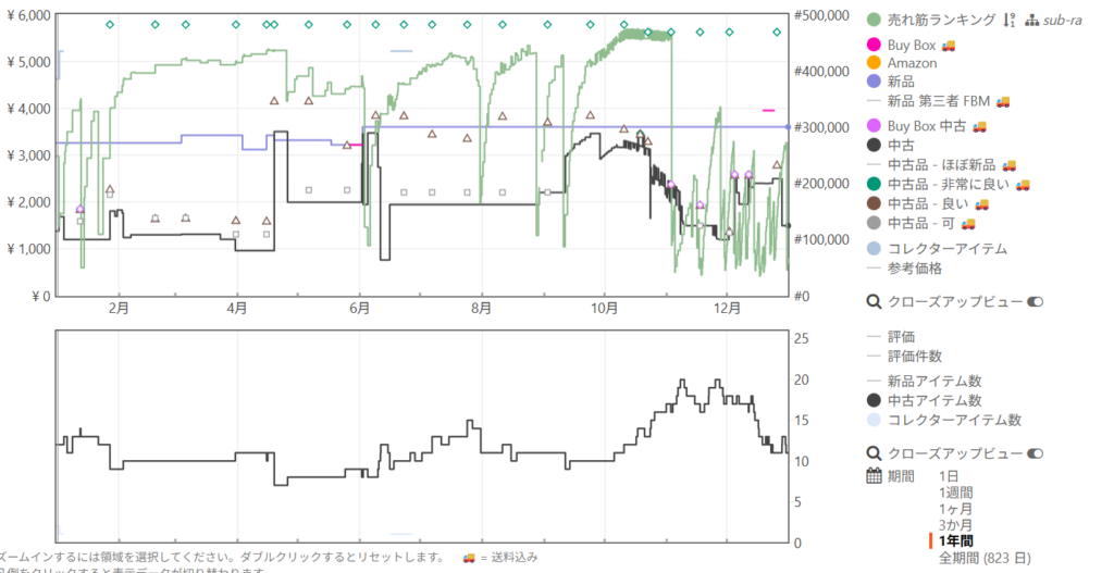 同じ商品の直近1年間のKeepaの波形です👇