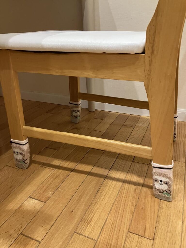 この「段差を作る」という発想の転換により、我が家の椅子ソックスは数ヶ月経った今でも一度も脱げることなく、現役で活躍しています。